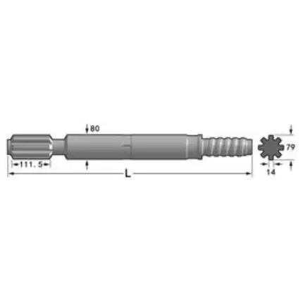 Хвостовик Tamrock (HL 1500-T80) специально разработан для моделей HL 1500-T80. Обеспечивает надежное соединение и эффективную передачу энергии, что улучшает производительность буровых работ.