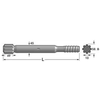 Хвостовик Tamrock (HL 550 SUPER, HL 560 SUPER, HL 510S-45) подходит для моделей HL 550 SUPER, HL 560 SUPER и HL 510S-45. Обеспечивает надежное соединение и высокую производительность буровых работ.
